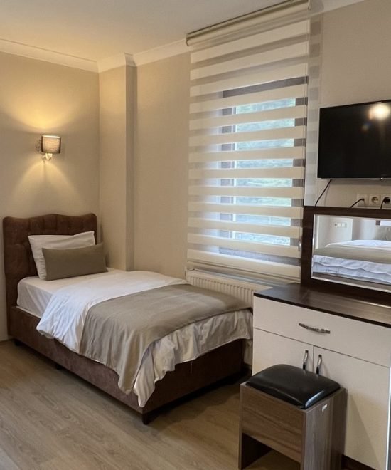Konfor ve şıklığı bir araya getiren Valoria Hotel’in üç kişilik odası, tatiliniz boyunca kendinizi evinizde gibi hissetmenizi sağlar. Ferah odada bir çift kişilik ve bir tek kişilik yatak ile üç kişi rahatlıkla konaklayabilir.