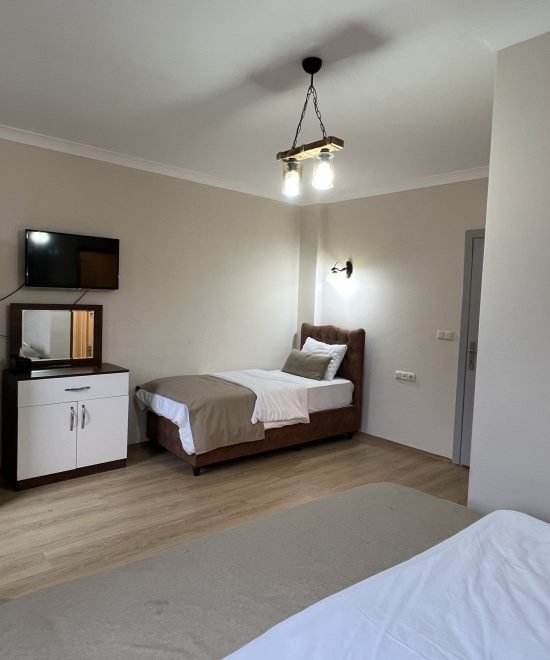 Valoria Hotel’in konforlu triple odası, üç kişilik konaklamalar için ideal bir seçenektir. Oda içerisinde bir adet çift kişilik yatak ve bir adet tek kişilik yatak bulunur. Modern banyo ve geniş giysi dolabı konforlu bir deneyim sağlar.